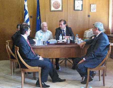 Belediyeden sonraki durak Rodap Valisi Aris Yanakidis’in makamı idi. Makamında ziyaret edilen Vali Yanakidis heyet ile Türk-Yunan işbirliği üzerine bir görüşme gerçekleştirdi. Karaosmanoğlu kalkınmanın yerelden başlamasının önemine değinirken Başbakan Tayyip Erdoğan’ın Belediye Başkanlığından Başbakanlığa gelmesinin Türkiye’nin büyük bir şansı olduğunu ifade etti. Sıcak bir ortamda gerçekleşen ziyaret karşılıklı hediyeleşme ile sona erdi.
