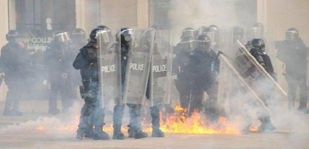 Eylemciler polise boya fırlattı ve başbakanlık binasının camlarını taşladı. Polis eylemcilere biber gazı ile müdahale etti. Çatışmada 2 gösterici ile 4 polis yaralandı, çok sayıda kişi de gözaltına alındı.